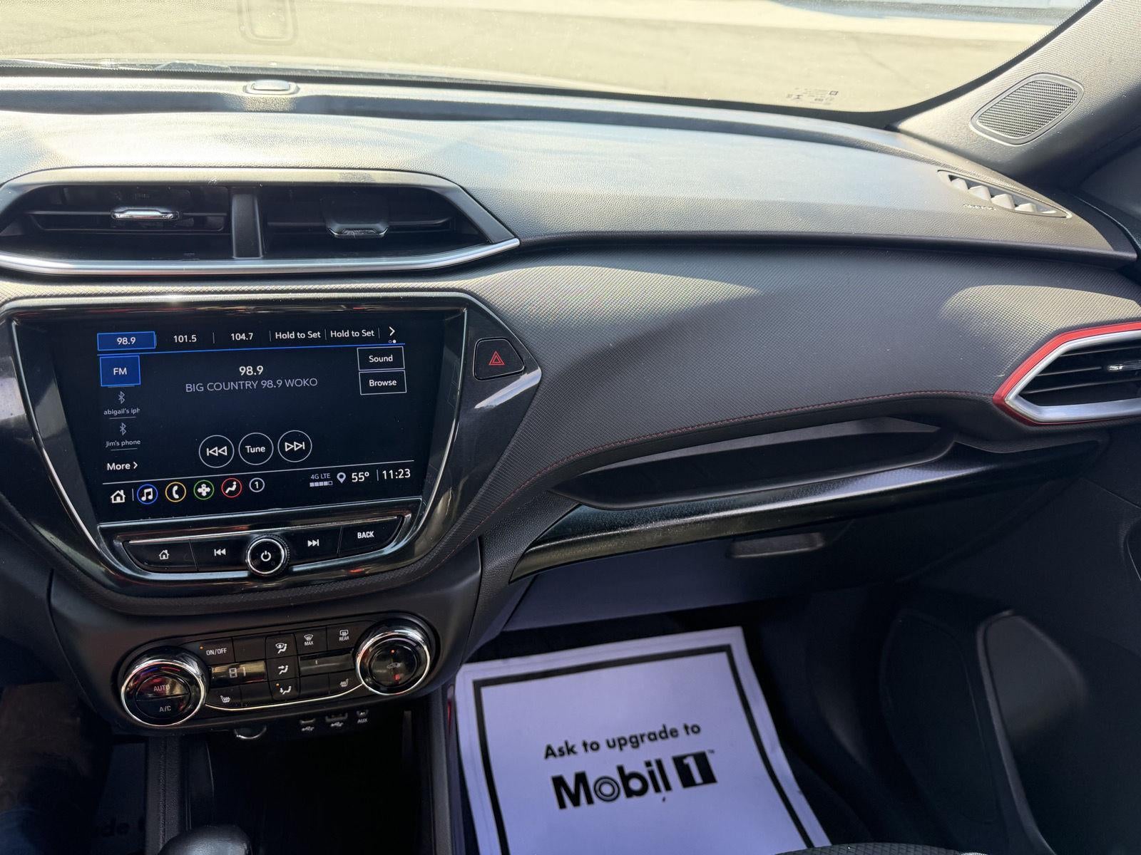 This 2023 Chevrolet Trailblazer RS has a Mosaic Black Metallic exterior with 49,540 miles. This car also has a beautiful Jet Black with Red accents interior!