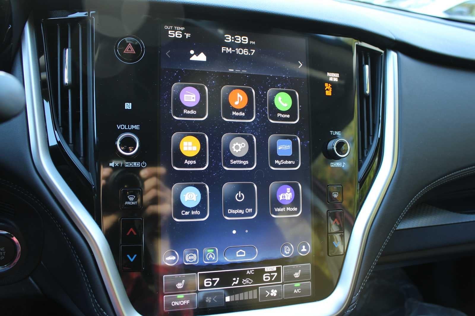 - Radio: Subaru 11.6" Multimedia Plus System -inc: AM/FM stereo, HD Radio, valet mode, multi-touch gesture high resolution display screen, voice activated controls, Bluetooth® audio streaming and hands-free phone connectivity w/SMS text messaging (refer to subaru.com for cell phone compatibility), Near Field Communication (NFC), iPod control capability, SiriusXM w/360L (4 months free trial/subscription required after), SiriusXM Travel Link (3 years free trial/subscription required after), smartphone integration w/full screen view and wireless connection for Android Auto and Apple CarPlay, USB and Over The Air (OTA) audio system update, audio/Bluetooth® steering wheel control switches, 6 speakers, 3.5mm illuminated front auxiliary input jack, illuminated front and rear USB-A and USB-C input/charge ports and roof mounted satellite and connected services
